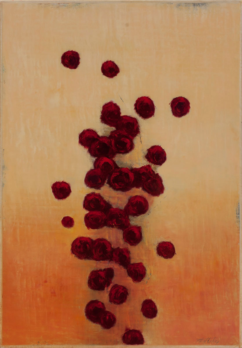 Previous ImageNext Image flying_color Flying Color 34″ x 24″ • Oil on Canvas • SOLD Flying Color by Poteet Victory, rose painting with reds and yellows