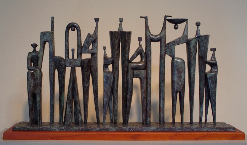 Previous ImageNext Image Group (2) Group 25″ x 46″ x 9 • Bronze • SOLD Bronze group of abstract people