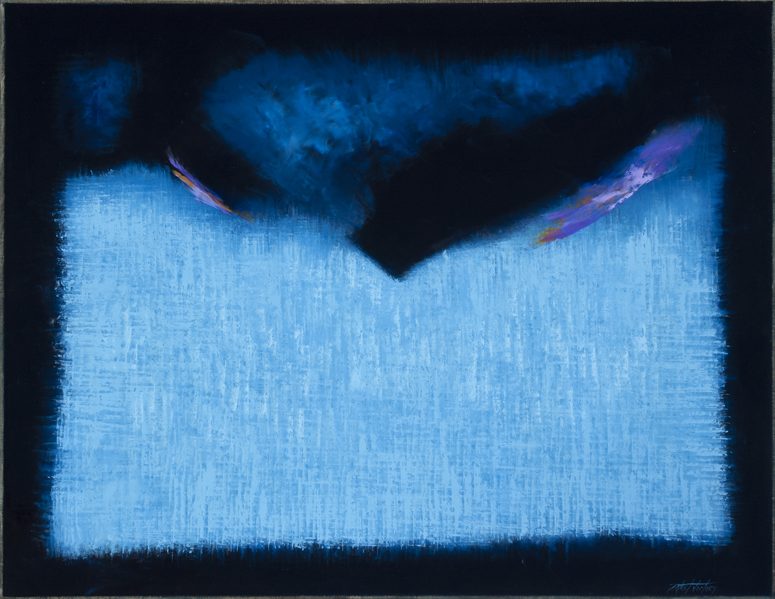 Previous ImageNext Image moon_of_first_snow_VI Moon of First Snow VI 40″ x 50″ • Oil on Canvas • Sold Blue black purple abstract painting headboard or couch size