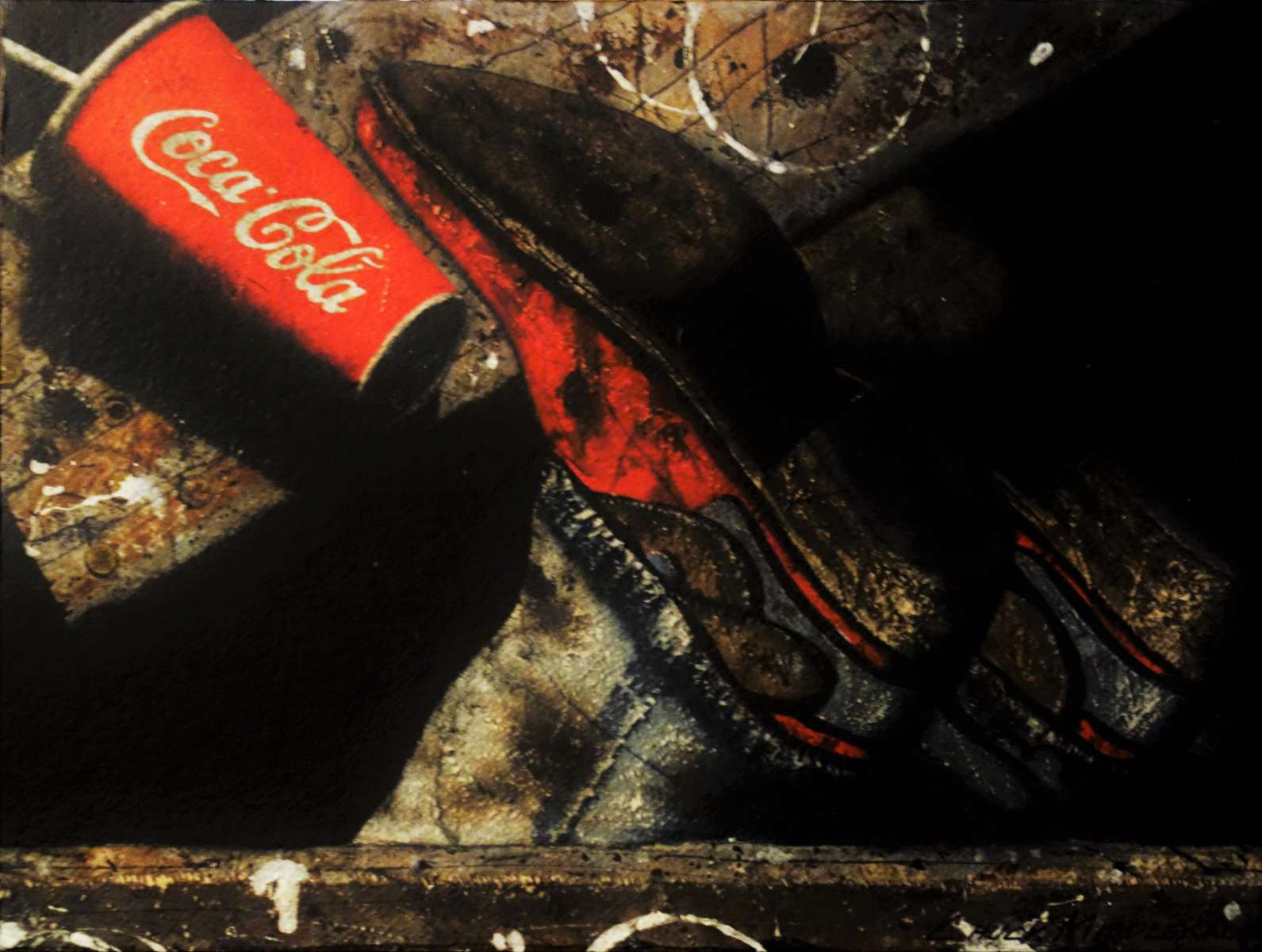 Previous ImageNext Image One Cowboy Too Many 12 x 16 Acrylic & Watercolor on Paper Mounted on Canvas $1,200 One Cowboy Too Many12″ x 16″ • Mixed Media on Canvas • $1,700
