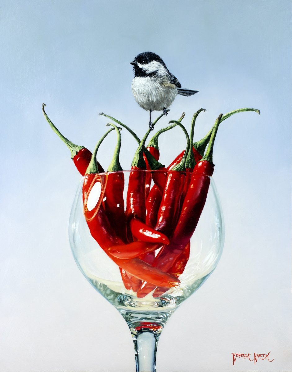 Rebecca Korth Sold View Available Work Biography blackcappedchickadeechilis Black-capped Chickadee & Chilis14" x 11" • Oil on Aluminum Panel • SOLD cardinalstout Cardinal & Stout7" x 5" • Oil on Aluminum Panel • $1,250 tuftedtitmouseorange Tufted Titmouse & Orange7" x 5" • Oil on Aluminum Panel • SOLD longtail Longtail & Ghost7" x 5" • Oil on Panel • SOLD chickadee Chickadee & Red Vase14" x 11" • Oil on Panel • SOLD vermilion Vermilion & Peppers6" x 12" • Oil on Panel • SOLD blackcappedberry Black-capped & Berry7" x 5" • Oil on Panel • SOLD titmouse Titmouse & Tangerine 7" x 5" • Oil on Panel • SOLD hummingbird Hummingbird & Red Delicious5" x 5" • Oil on Panel • SOLD red faced warbler Red-faced Warbler & Red Peppers8" x 10" • Oil on Panel • SOLD hummingbird ghosts Hummingbird & Glass of Ghosts14" x 11" • Oil on Panel • SOLD barn swallow blue glass Barn Swallow & Blue Glass14" x 11" • Oil on Panel • SOLD chickadee red glass Chickadee & Red Glass14" x 11" • Oil on Panel • SOLD goldencrowned kinglet Goldern-crowned Kinglet & Glass5" x 5" • Oil on Panel • SOLD porcelain pears Porcelain & Pears5" x 5" • Oil on Panel • SOLD Oriole and orange web Oriole on Orange7" x 5" • Oil on Panel • SOLD chickadee cherry cup Chickadee & Cherry Cup7" x 5" • Oil on Panel • SOLD hummingbird chili (web) Hummingbird & Hot Chili8" x 10" • Oil on Panel • SOLD cardinal pepper Female Cardinal & Sweet Pepper10" x 8" • Oil on Panel • SOLD chickadee red pear Chickadee, Pear & Cherries11" x 14" • Oil on Panel • SOLD King pear Golden Kinglet & Pear7" x 5" • Oil on Panel • SOLD rufous tomatoes Rufous & Garden Tomatoes11" x 14" • Oil on Panel • SOLD bluebird blueberry(web) Bluebird & Blueberry10" x 8" • Oil on Panel • SOLD western tanager pepper Western Tanager & Pepper7" x 5" • Oil on Panel • SOLD Rufous & Red Chile_7x5 Rufous & Red Chili7" x 5" • Oil on Panel • SOLD Oriole & Turquoise_11 x 14 Oriole & Turquoise14" x 11" • Oil on Panel • SOLD Calliope on Strawberry_8x10 Calliope on Strawberry8" x 10" • Oil on Panel • SOLD cardinal berries pears(11x14) Cardinal, Berries & Pear11" x 14" • Oil on Panel • SOLD swallow orange(7x5) Swallow Orange7" x 5" • Oil on Panel • SOLD ruby tea(10x8) Ruby & Raspberry Tea10" x 8" • Oil on Panel • SOLD