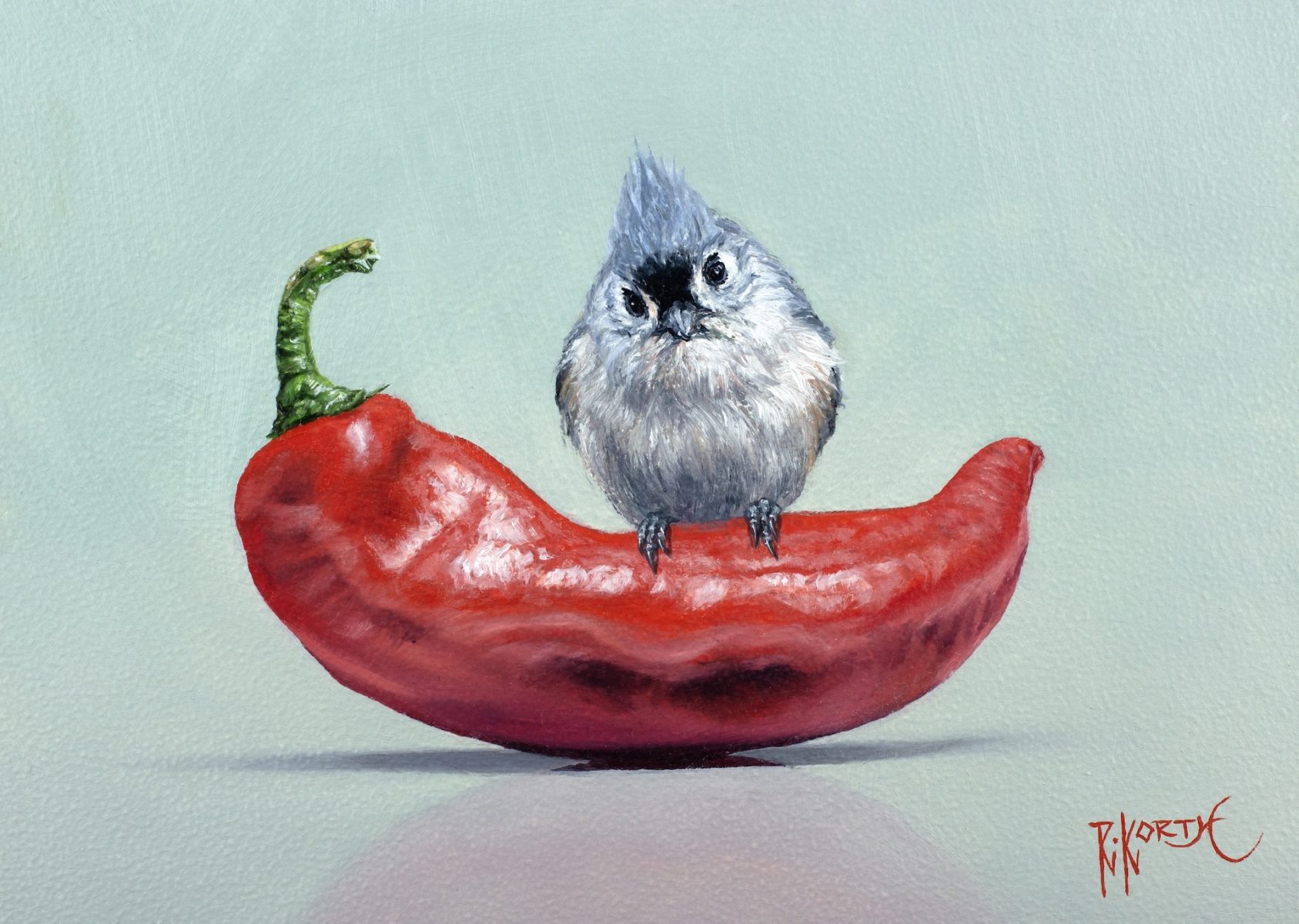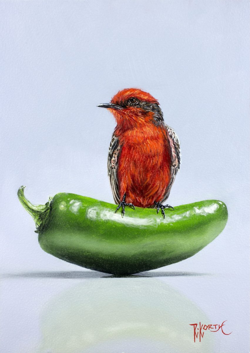 Rebecca Korth Sold View Available Work Biography titmouse chili Titmouse & Chili5" x 7" • Oil on Aluminum Panel • SOLD chickadeecherry Chickadee Cherry Balance7" x 5" • Oil on Panel • SOLD VermillionJalapeno Vermillion & Jalapeno7" x 5" • Oil on Aluminum Panel • SOLD golden crowned Golden-crowned & Blueberries & Peppers10" x 8" • Oil on Panel • SOLD titmouse tangerine Tufted Titmouse & Tangerine7" x 5" • Oil on Aluminum Panel • SOLD blackcappedchickadeechilis Black-capped Chickadee & Chilis14" x 11" • Oil on Aluminum Panel • SOLD cardinalstout Cardinal & Stout7" x 5" • Oil on Aluminum Panel • $1,250 tuftedtitmouseorange Tufted Titmouse & Orange7" x 5" • Oil on Aluminum Panel • SOLD longtail Longtail & Ghost7" x 5" • Oil on Panel • SOLD chickadee Chickadee & Red Vase14" x 11" • Oil on Panel • SOLD vermilion Vermilion & Peppers6" x 12" • Oil on Panel • SOLD blackcappedberry Black-capped & Berry7" x 5" • Oil on Panel • SOLD titmouse Titmouse & Tangerine 7" x 5" • Oil on Panel • SOLD hummingbird Hummingbird & Red Delicious5" x 5" • Oil on Panel • SOLD red faced warbler Red-faced Warbler & Red Peppers8" x 10" • Oil on Panel • SOLD hummingbird ghosts Hummingbird & Glass of Ghosts14" x 11" • Oil on Panel • SOLD barn swallow blue glass Barn Swallow & Blue Glass14" x 11" • Oil on Panel • SOLD chickadee red glass Chickadee & Red Glass14" x 11" • Oil on Panel • SOLD goldencrowned kinglet Goldern-crowned Kinglet & Glass5" x 5" • Oil on Panel • SOLD porcelain pears Porcelain & Pears5" x 5" • Oil on Panel • SOLD Oriole and orange web Oriole on Orange7" x 5" • Oil on Panel • SOLD chickadee cherry cup Chickadee & Cherry Cup7" x 5" • Oil on Panel • SOLD hummingbird chili (web) Hummingbird & Hot Chili8" x 10" • Oil on Panel • SOLD cardinal pepper Female Cardinal & Sweet Pepper10" x 8" • Oil on Panel • SOLD chickadee red pear Chickadee, Pear & Cherries11" x 14" • Oil on Panel • SOLD King pear Golden Kinglet & Pear7" x 5" • Oil on Panel • SOLD rufous tomatoes Rufous & Garden Tomatoes11" x 14" • Oil on Panel • SOLD bluebird blueberry(web) Bluebird & Blueberry10" x 8" • Oil on Panel • SOLD western tanager pepper Western Tanager & Pepper7" x 5" • Oil on Panel • SOLD Rufous & Red Chile_7x5 Rufous & Red Chili7" x 5" • Oil on Panel • SOLD Oriole & Turquoise_11 x 14 Oriole & Turquoise14" x 11" • Oil on Panel • SOLD Calliope on Strawberry_8x10 Calliope on Strawberry8" x 10" • Oil on Panel • SOLD cardinal berries pears(11x14) Cardinal, Berries & Pear11" x 14" • Oil on Panel • SOLD swallow orange(7x5) Swallow Orange7" x 5" • Oil on Panel • SOLD ruby tea(10x8) Ruby & Raspberry Tea10" x 8" • Oil on Panel • SOLD
