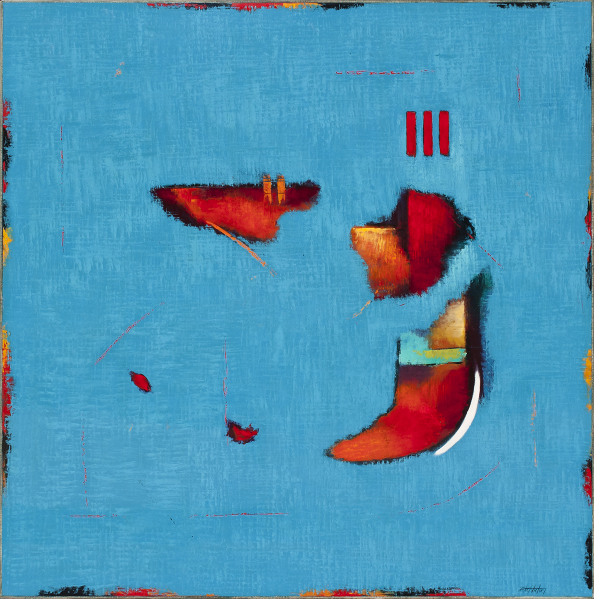 Previous ImageNext Image the_root_the_branch_the_tree The Root, the Branch, the Tree 72″ x 72″ • Oil on Canvas • $71,000 Blue abstract painting with red Native American